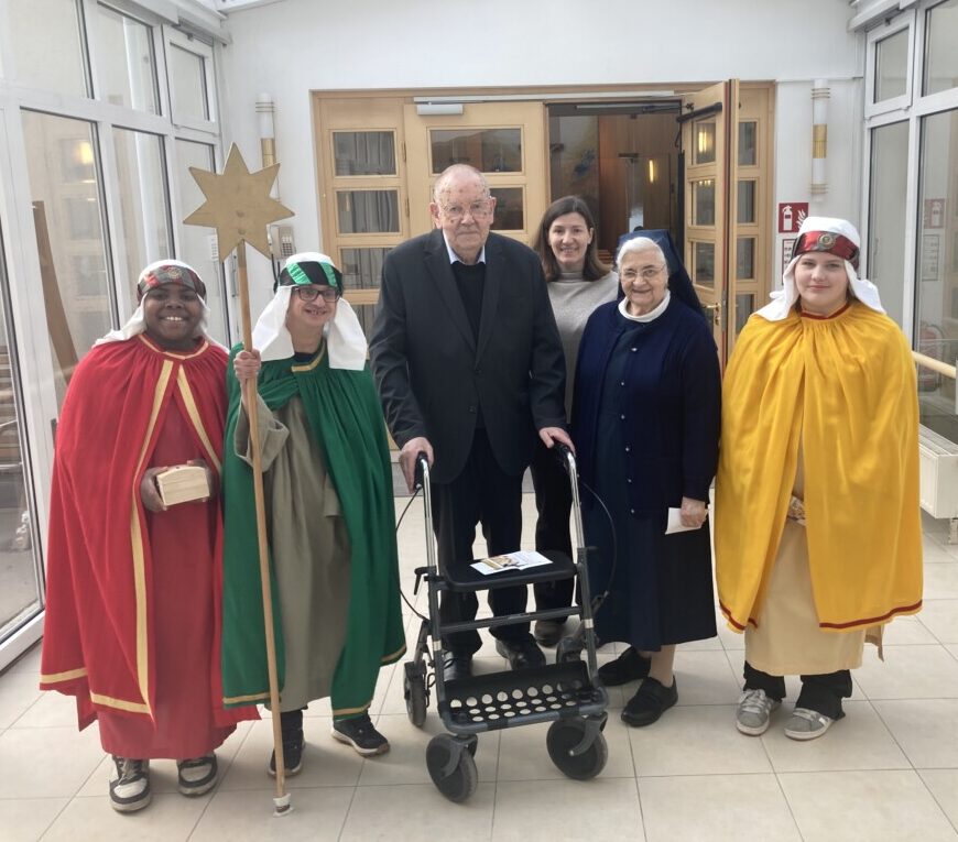 Eine weitere Sternsingergruppe machte sich an diesem Tag auf den Weg ins Wohn- und Pflegeheim „Mater Salvatoris“, wo ebenfalls der Gottesdienst mitgefeiert und im Anschluss die verschiedenen Abteilungen und die Kommunitäten der Salvatoriannerinnen besucht wurden.