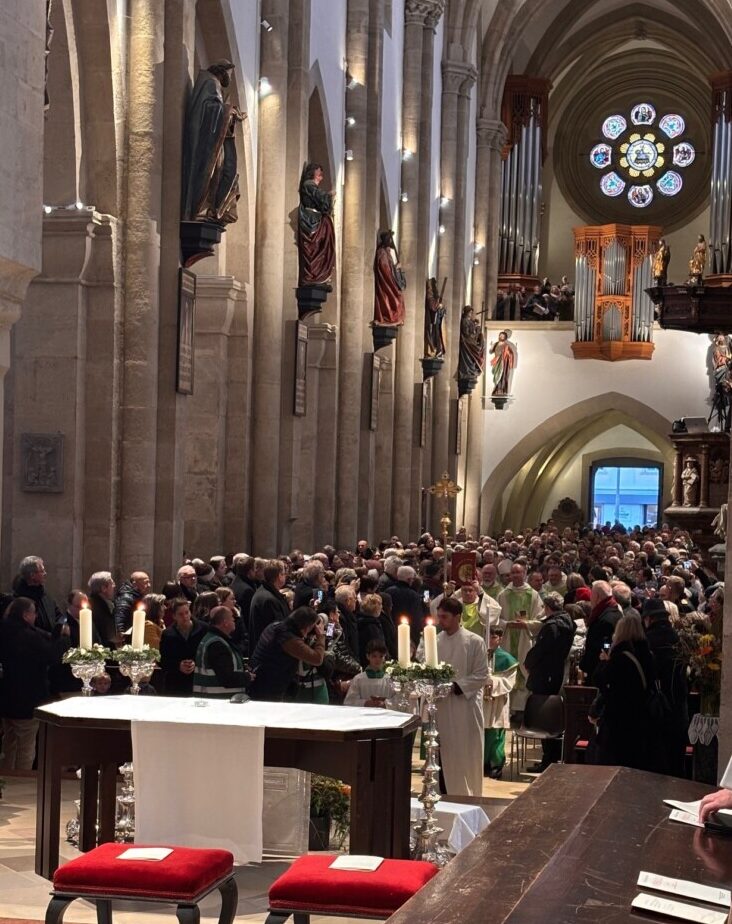 Etwa 1.300 Gläubige und viele Priester und Diakone feierten den Gottesdienst mit. Aus unserer Pfarre waren einige Pfarrgemeinderäte und ehrenamtliche Mitarbeiter:innen dabei. Unter den Konzelebranten war auch Pfarrvikar Prior Oliver Hartl. Und Sebastian Böck, welcher auch in unserer Pfarre immer wieder als Organist tätig ist, spielte zu diesem besonderen Gottesdienst an der Wiener Neustädter Domorgel.